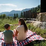 The 1-room Waldhuette Stifthube Apartment Obertal features a private garden and a terrace to relax on.